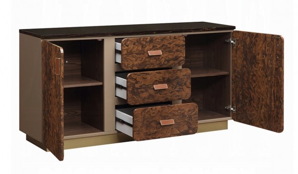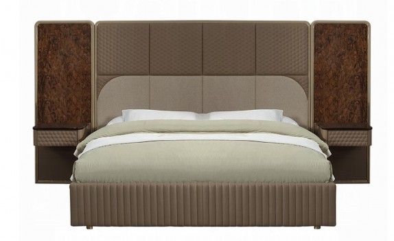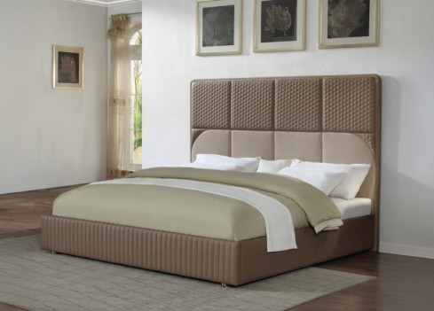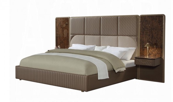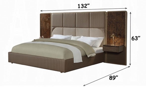 BD20031EK Marcelino Eastern King Bed Brown & Beige Microfiber Leather & Glossy Wood Grain By Acme Furniture