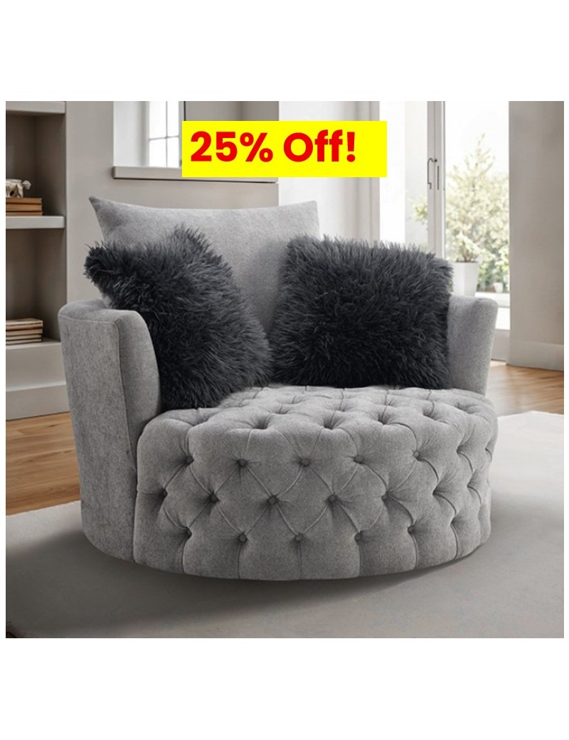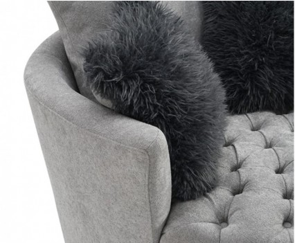 Button Tufted Oversized Round Chair Light Gray Transitional Style by Furniture of America