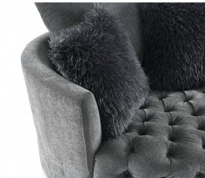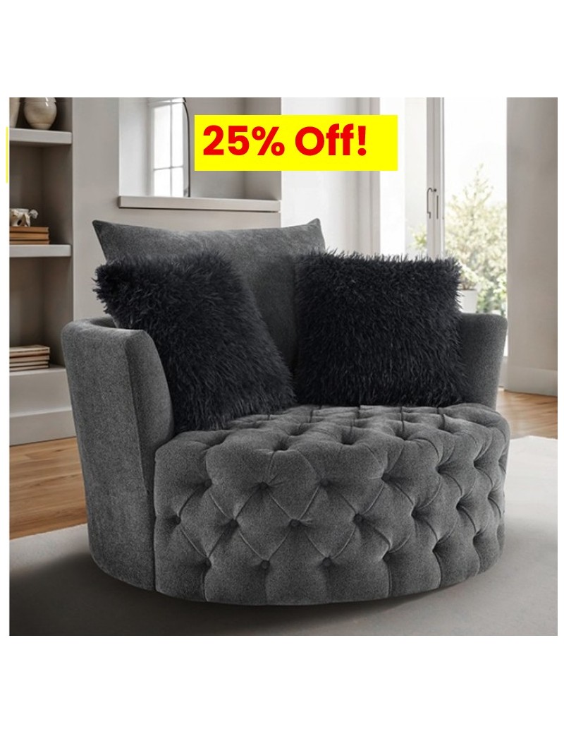 Button Tufted Oversized Round Chair Dark Gray Transitional Style by Furniture of America