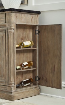 - Wine bottle storage behind push-to-open doors on each side