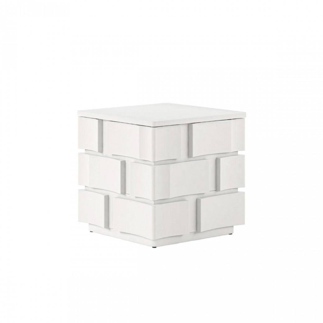 Elegant yet utilitarian, this striking cast resin table makes a statement in monochrome. A layered design evokes the image of a gleaming white brick cube, finished in a subtly textured white plaster that invites admiration and touch.