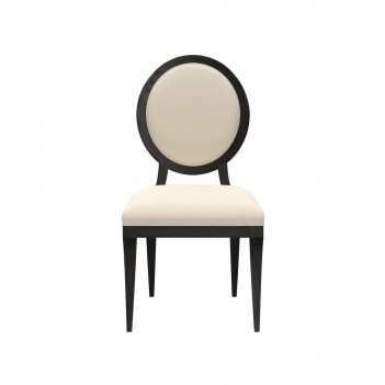 MUST PURCHASE IN VARIABLES OF 2. The Atrium Oval Side Chair is here to deliver beauty that's sure to be the talk of the table. Rooted in historical style, this dining chair is based on 18th-century French chairs in the iconic medallion style, updated for the modern era with contrasting blackened sable finish and casually chic neutral woven upholstery.