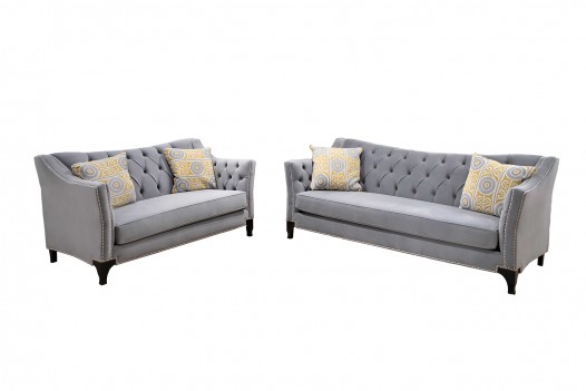 SM2296GY 2PC Sofa & Loveseat Gray Fabric Transitional Style Wilmette Collection By Furniture of America
