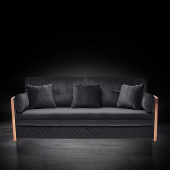 Adagio Luxury Sofa is an original Roberto Grassie design furniture. The Stainless Steel detail on the arm shows the sophistication and workmanship of this exquisite piece of furniture. It features removable back cushions for versatility and added variety, the stainless steel metal bar on the back cushion adds to its unique detail. Throw pillows are included with each piece The Adagio sofa set is available in multiple velvet fabrics and silver or rose gold options on the accent metal details.