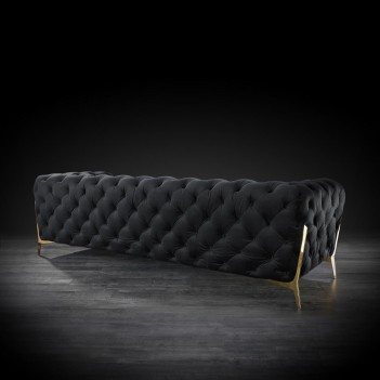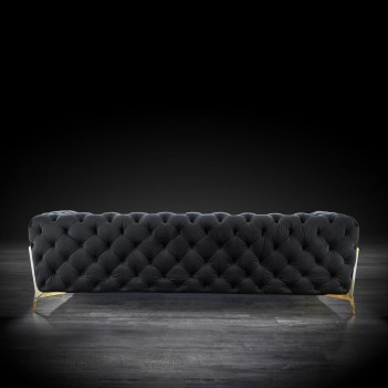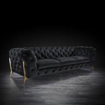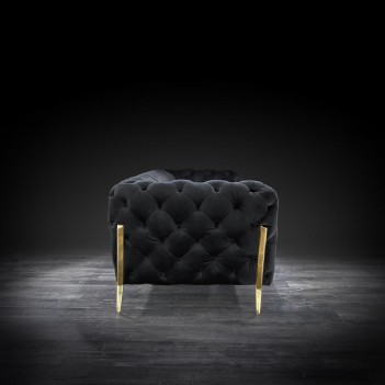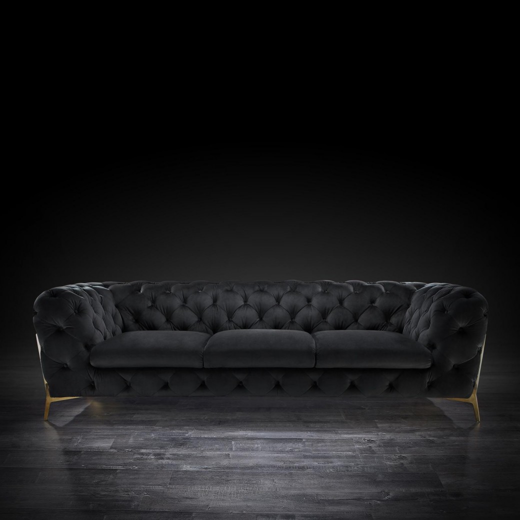 Regina Tufted sofa set is a statement piece like no other. It features tufted arms and back, allowing you to float the piece in the middle of your living room and still have stylish look from the back of the sofa. It features plush cushions for comfort. It is available in multiple colors on the fabric and Stainless steel or Rose gold options on the stylish sofa legs.