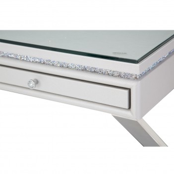 Your workspace should bring you joy and productivity. The Melrose Plaza Writing Desk was made to keep things classy and contained with three slim, velvet lined pencil drawers and a clear, easy-to-clean glass tabletop. Add a stunning Glam design, and you have a beautiful desk that's guaranteed to spark your inspiration.